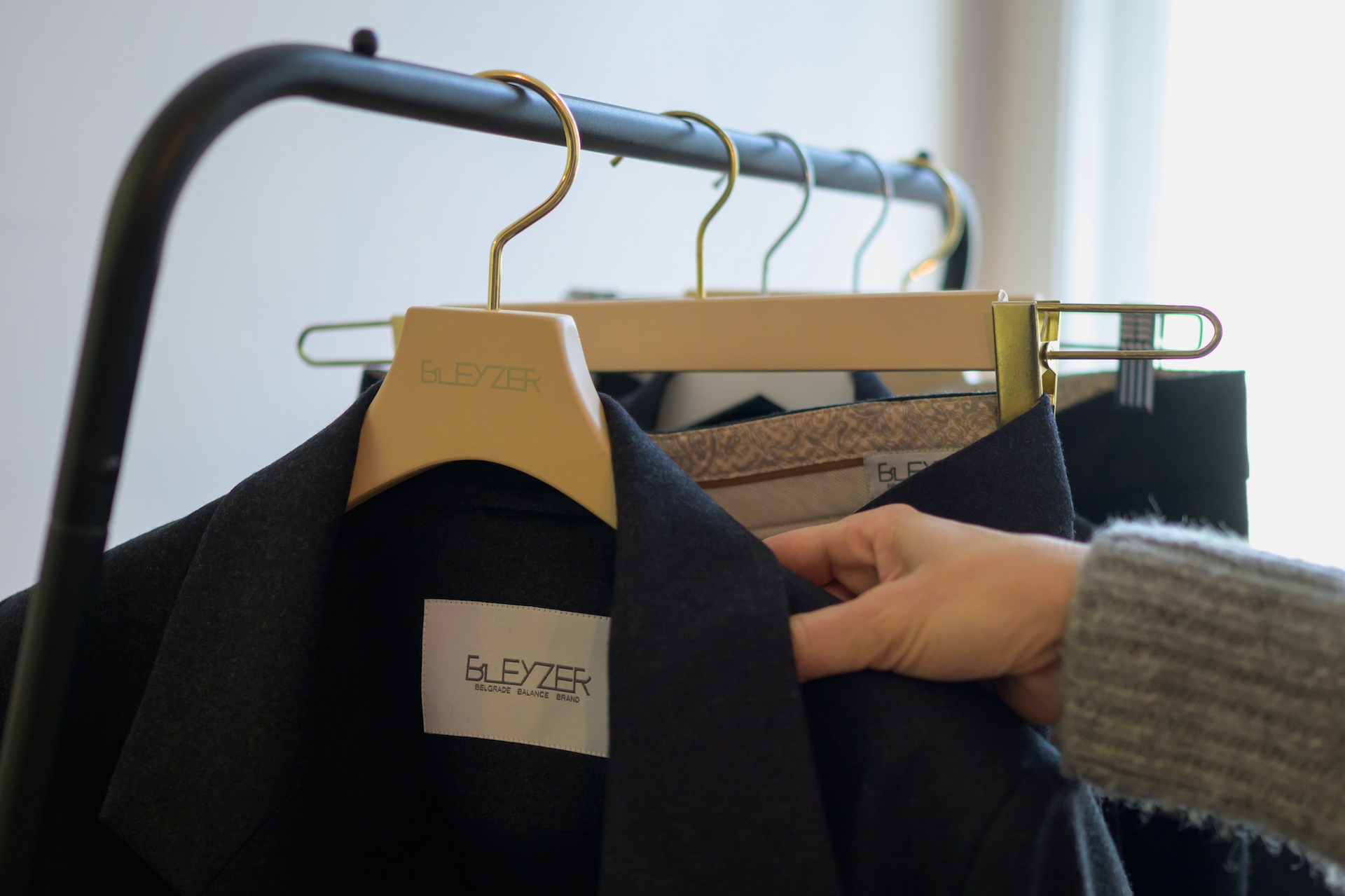 Даниела Драганов: Док сам одрастала, у нашој породици се одувек за сако говорило блејзер, па ми је самим тим та реч била прва асоцијација када сам размишљала о називу бренда. На уму је била оштра и јасна форма, те се Bleyzer са Y некако сам наметнуо.