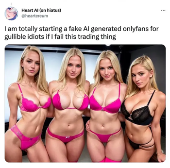 Платформа Only Fans заснована је на креирању ексклузивног садржаја који људи плаћају креаторима у виду месечне претплате. Доживела је огроман пораст корисника за време пандемије, а тренд раста је настављен до данас. Многи креатори остварују невероватан профит, стога не чуди што некима пада на памет да вештачко генерисање слика искористе да на једноставан начин дођу до зараде.