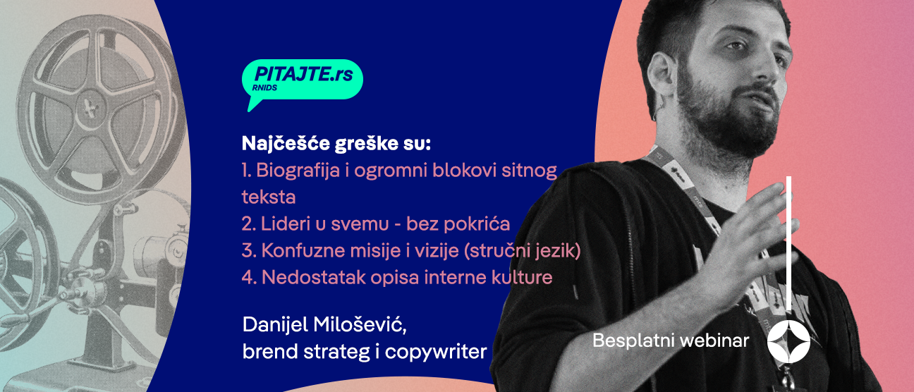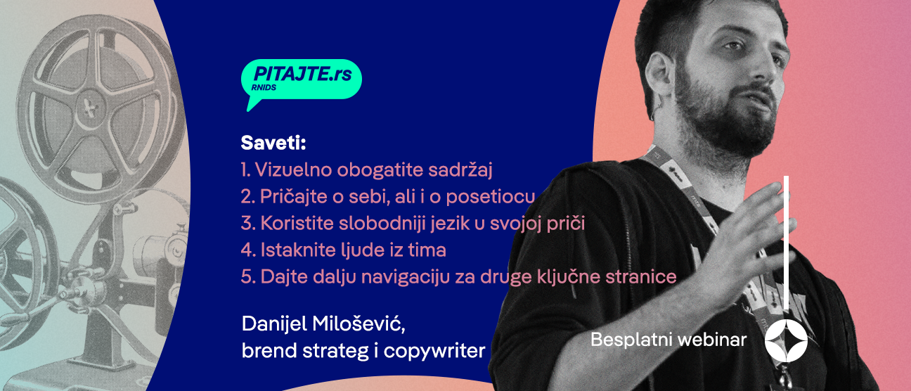 Мајско издање pitajte.rs вебинара премијерно је приказано 8. маја у 20 часова. Овог пута бавили смо се сајтовима са посебним акцентом на веб-страници О НАМА.