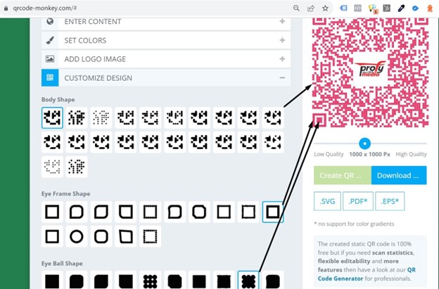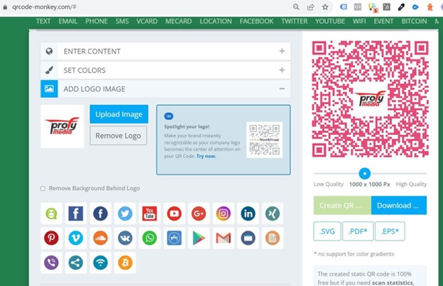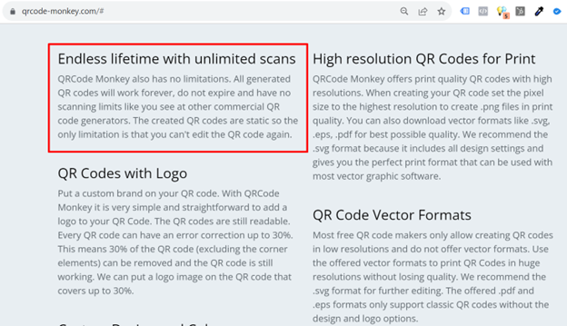 Уколико вам није потребан динамички QR, у алату QR Code Monkey можете да правите кодове који су бесплатни, немају временско ограничење трајања, нити ограничење у броју скенирања.