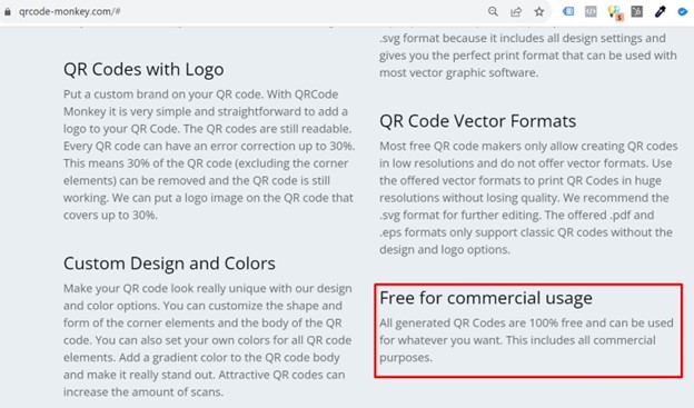 Такође, QR кодове направљене у овом алату дозвољено је бесплатно користити у било које сврхе, укључујући и комерцијалне.