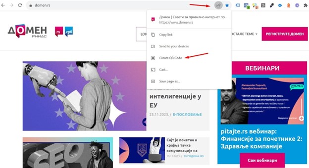 Један од начина како можете да поделите веб-страницу на којој се тренутно налазите јесте да направите њен QR код и поделите га. QR код странице се прави једноставно, директно из претраживача.