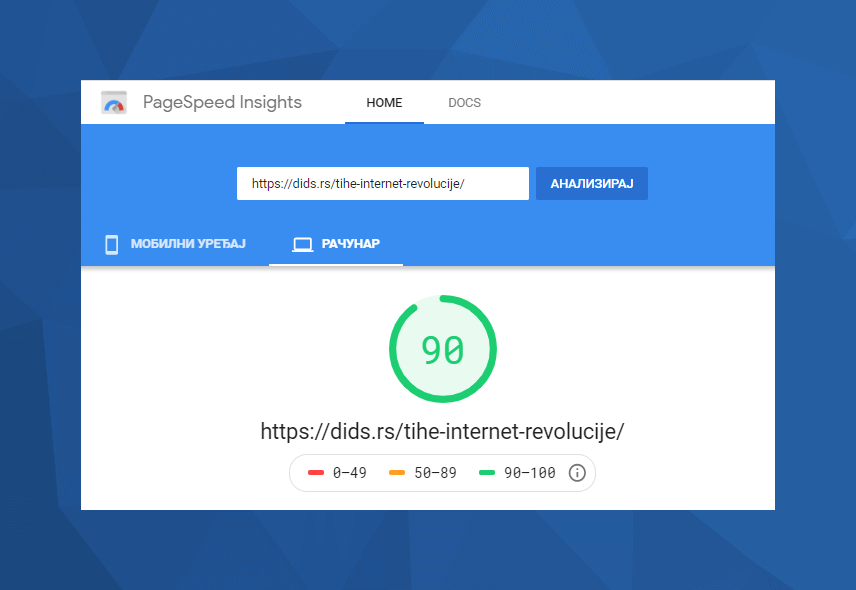 Гугл је власницима сајтова дао на располагање неколико алата за тестирање брзине учитавања сајтова, од којих су најпопуларнији Page Speed Insights и Lighthouse. Проверите какве оцене добијате преко ових алата и ангажујте програмере да побољшају брзину учитавања.