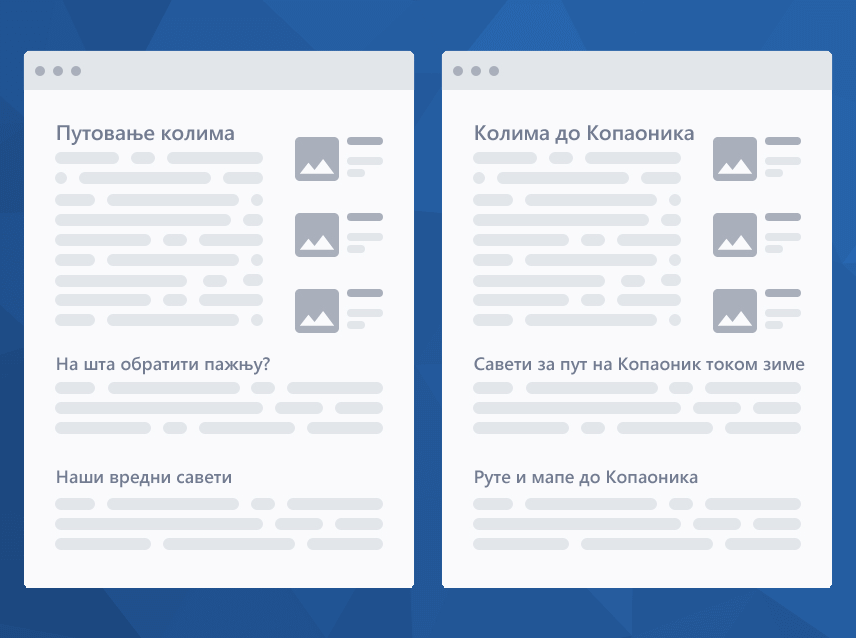 Да кренемо од основа. Тешко ћете се рангирати за нешто што немате на сајту. Зато је битно да пре свега имате одговарајући садржај који Гугл може да попише, анализира и представи корисницима у резултатима претраге када они траже релевантне кључне речи.